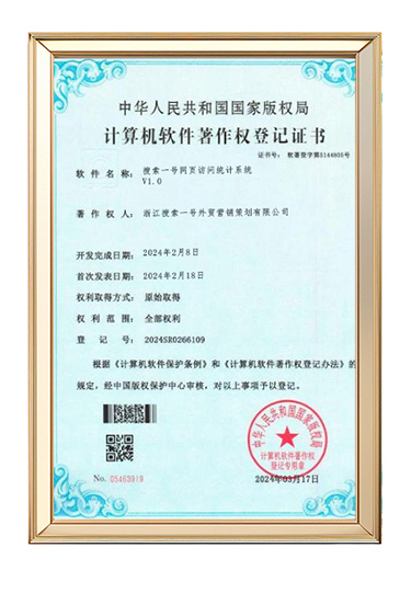 荣获多项谷歌官方颁发的认证证书,多项国家计算机软著证书,多所大学颁发的就业合作伙伴等荣誉。这一切都只为客户打造一个高询盘转化的谷歌SEO优化服务,涵盖SEO数据分析、智能优化工具、内容管理系统等多个核心软著证书。优化部全员考取谷歌数据分析、谷歌搜索广告、谷歌展示广告、谷歌发现广告等正多项谷歌官方颁发的证书。公司员工也都是来自各大合作院校的尖子生,不仅在学校的成绩优异且在工作中也表现异常出色。搜索一号全员的理念只有一个:做好每一个客户外贸独立站的询盘效果
