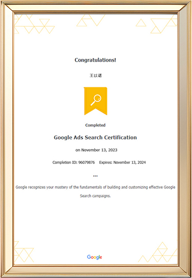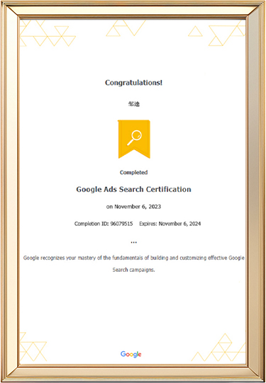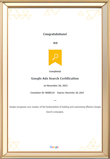 通过认证,竞价师掌握了谷歌广告平台的最新技术和策略,能够更好地理解客户需求,并制定高效的广告投放计划,同时这也意味着我们的服务质量和专业水平得到了谷歌官方的认可。